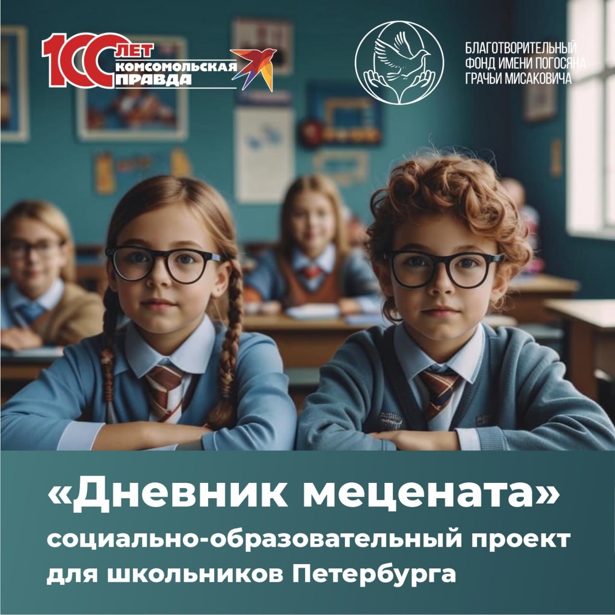 Патриотизм с юных лет: в Петербурге стартует «Дневник мецената»! «Комсомолка» и Благотворительный фонд имени Г.М. Погосяна запускают новый социально-образовательный проект для школьников Северной столицы. Он приурочен к 80-летию Победы в Великой Отечественной войне и станет частью ежегодного конкурса от «КП» - «Губернаторский дневник» Каждый месяц ребят ждут лекции от историков о героях и подвигах тех лет, а также экскурсии в музей «Сохраняя память» - с настоящими экспонатами, которые расскажут исторические события и судьбы людей! Кроме того с сентября для школьников стартует конкурс арт-объектов, посвященных войне. Победителя наградит лично почетный меценат Грачья Мисакович Погосян, а работа ляжет в основу последующих реализаций Фонда. Подпишись на Комсомольскую правду: СПб — отдай свой буст нам