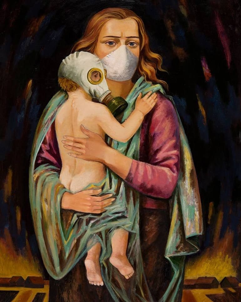 Чернобыльская Мадонна. На снимке от лондонской галереи Саатчи показана картина белорусского художника Виктора Барабанцева. Она была написана в 1989 году как осмысление последствий трагедии в Чернобыле.