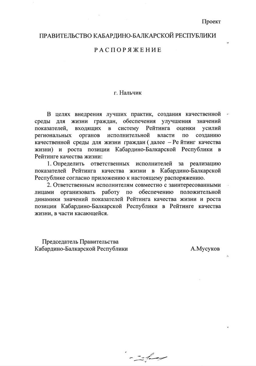 В Кабардино-Балкарии появится Рейтинг качества жизни, разработанный Агентством стратегических инициатив. Данный рейтинг будет оценивать усилия региональной власти по созданию комфортной среды для жителей и их общую удовлетворенность социальной сферой. Проект распоряжения правительства КБР об определении ответственных за реализацию показателей рейтинга опубликован на сайте минтруда республики. Как отмечается в пояснительной записке, «качественная среда для жизни» является ключевым условием для субъективного счастья и создает предпосылки для устойчивого развития общества и экономики.