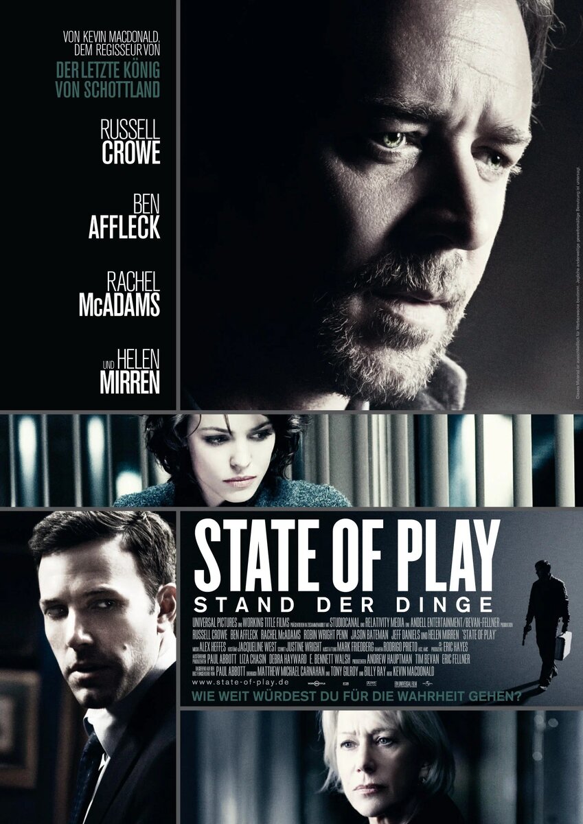 18+ Политический триллер от режиссёра Кевина Макдональда с молодыми и легендарными Расселом Кроу и Беном Аффлеко Что ж… Перед нами не просто детектив, а многослойный пазл, где журналистика ещё пахнет типографской краской, а не кликами. Большая игра — это не просто шаблонный триллер. Здесь есть то, чего так не хватает современным фильмам: настоящий саспенс без взрывов каждые пять минут.Сюжет начинается с, казалось бы, рядового убийства — молодая женщина, работавшая в команде конгрессмена, погибает при загадочных обстоятельствах. Но чем глубже журналист Кэл Макэфри (Кроу) копает, тем яснее становится: это не просто криминальная хроника, а часть куда более грязной игры. В ход идут утечки, шантаж и старые связи, а правда оказывается разменной монетой в борьбе за власть. Перед нами не просто детектив, а многослойный пазл, где журналистика ещё пахнет типографской краской, а не кликами. Большая игра — это не просто шаблонный триллер. Здесь есть то, чего так не хватает современным фильмам: на