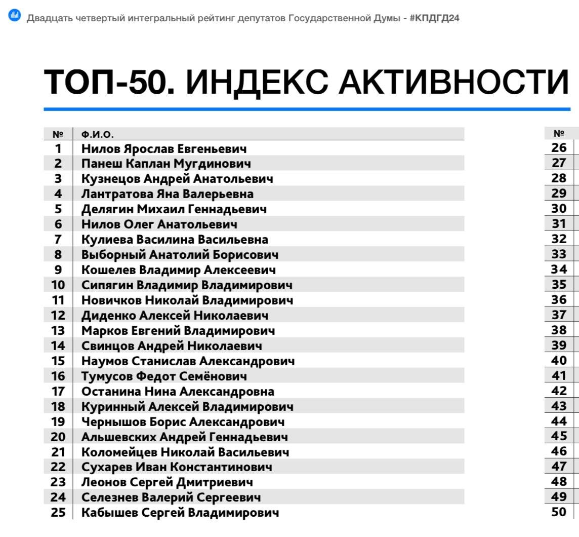⚡Вошла в пятерку самых активных депутатов Госдумы