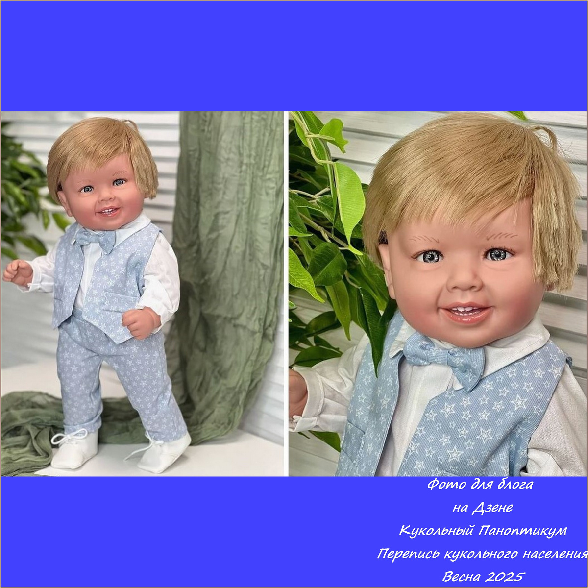 Здравствуйте, дорогие зрители и читатели! Перепись КуклоНаселения моего Кукольного Паноптикума продолжаю с помощью фото-портретов. Серхио-Маноло - испанская кукла от фабрики: Munecas Manolo Dolls. Мальчик полностью виниловый, на прямых ножках. Все части тела подвижны. С анатомическими половыми признаками. У куклы аромат ванили. Русый блондин (волосы не парик, прошивка по всей голове). Серые акриловые глазки, обрамлены ресницами (глазки не закрываются). На всем теле имеются складочки, как у настоящего ребенка. Одет - белая рубашка, бело-голубой костюм (брюки, жилет, бабочка-галстук), белые ботинки на шнуровке. Одежда вся снимается. Рост 47см. Производитель - Испания (Munecas Manolo Dolls). 😄🎈😄🎀😄🎈😄🎀😄🎈😄🎀😄🎈😄🎀😄🎈😄🎀😄🎈😄🎀😄🎈😄🎀