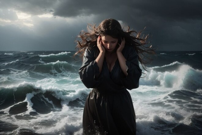 Не успела она опомниться, как очередная волна подхватила ее подбросив, словно пушинку, и снова накрыла с головой. Нина потеряла ориентацию, сознание её затуманилось и обессиленная, она не способна была сопротивляться. Еще чуть-чуть и всё…