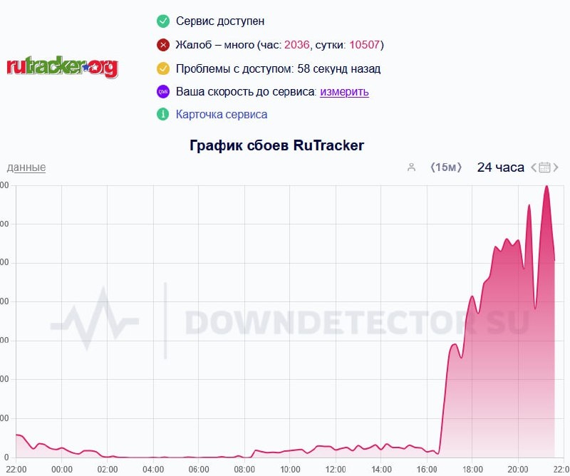 Сайт крупнейшего русскоязычного торрент-трекера RuTracker лежит уже более пяти часов.