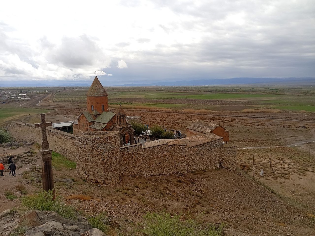 И ещё раз Хор Вирап и не открывшийся Арарат. Дождь начинался несколько раз и один из них мы переждали экскурсией в пещере, потому что по телефону сказали что для нас сорганизуют экскурсию сразу и слово сдержали, и после этого поехали в красивейший монастырь Нораванк, который затмил всё, но Хор Вирап со своей темницей достоин уважения, хотя ничего приятного в таком месте нет, действительно чтоб не сойти с ума там будешь молиться