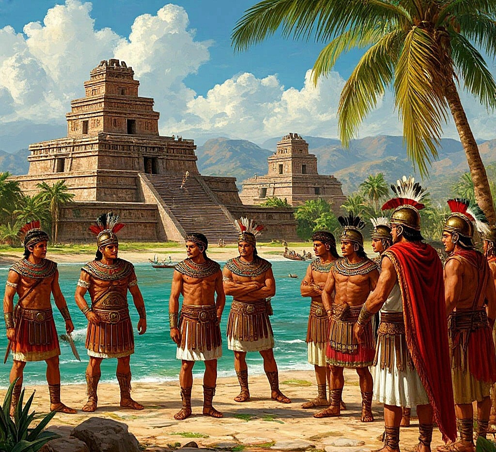 Маркс задавался вопросом: почему, когда Эрнан Кортес со своей братией прибыл в столицу ацтеков Теночтитлан, местные жители, ни разу не входившие в торговые, дипломатические или иные контакты с европейцами, увидав конкистадоров, посчитали их вернувшимися из страны восходящего Солнца белыми бородатыми богами, а не новыми гостями? Кто же тогда был до них? То, что это не викинги, это, я думаю, и так понятно. Колумб же не посещал страну ацтеков, как и прочие европейские путешественники. Но кроме них единственными "бледнолицыми" с точки зрения индейцев могли быть разве что смугловатые римляне, но никак не тёмные египтяне, нубийцы, финикийцы или евреи.