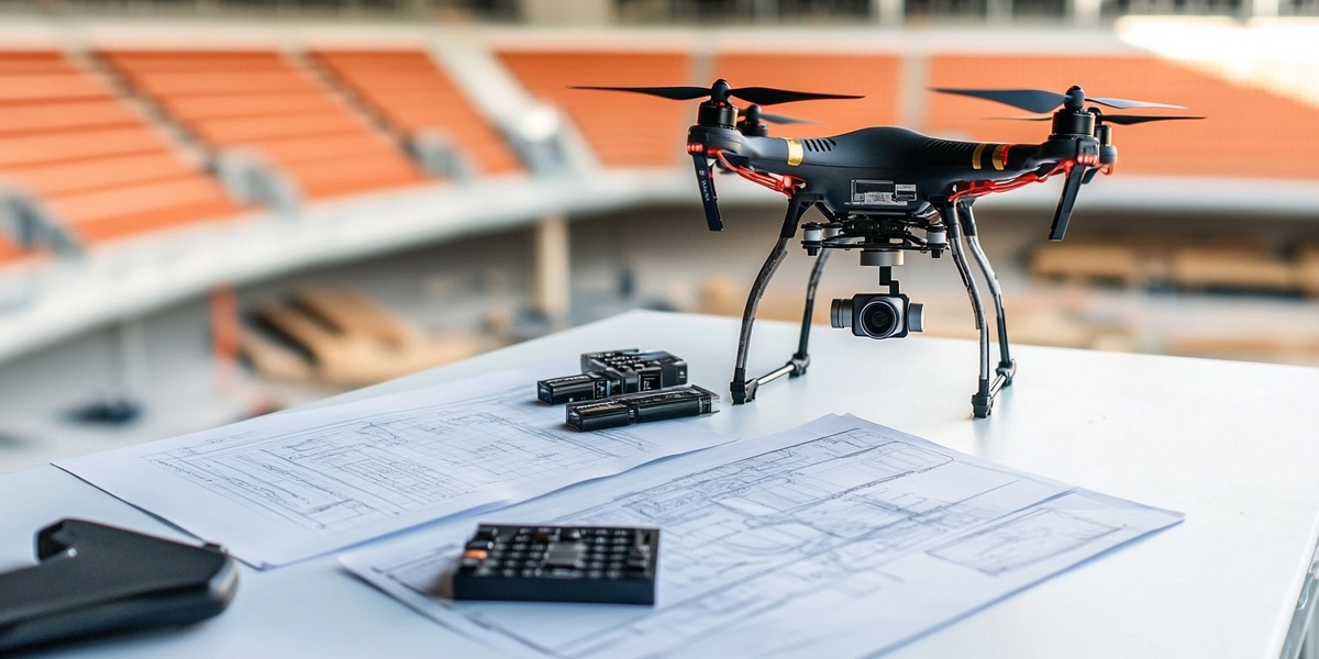 Создано на основе запроса: drone, remote controller, drone batteries, worksheets, all these products should be placed on a white table, the