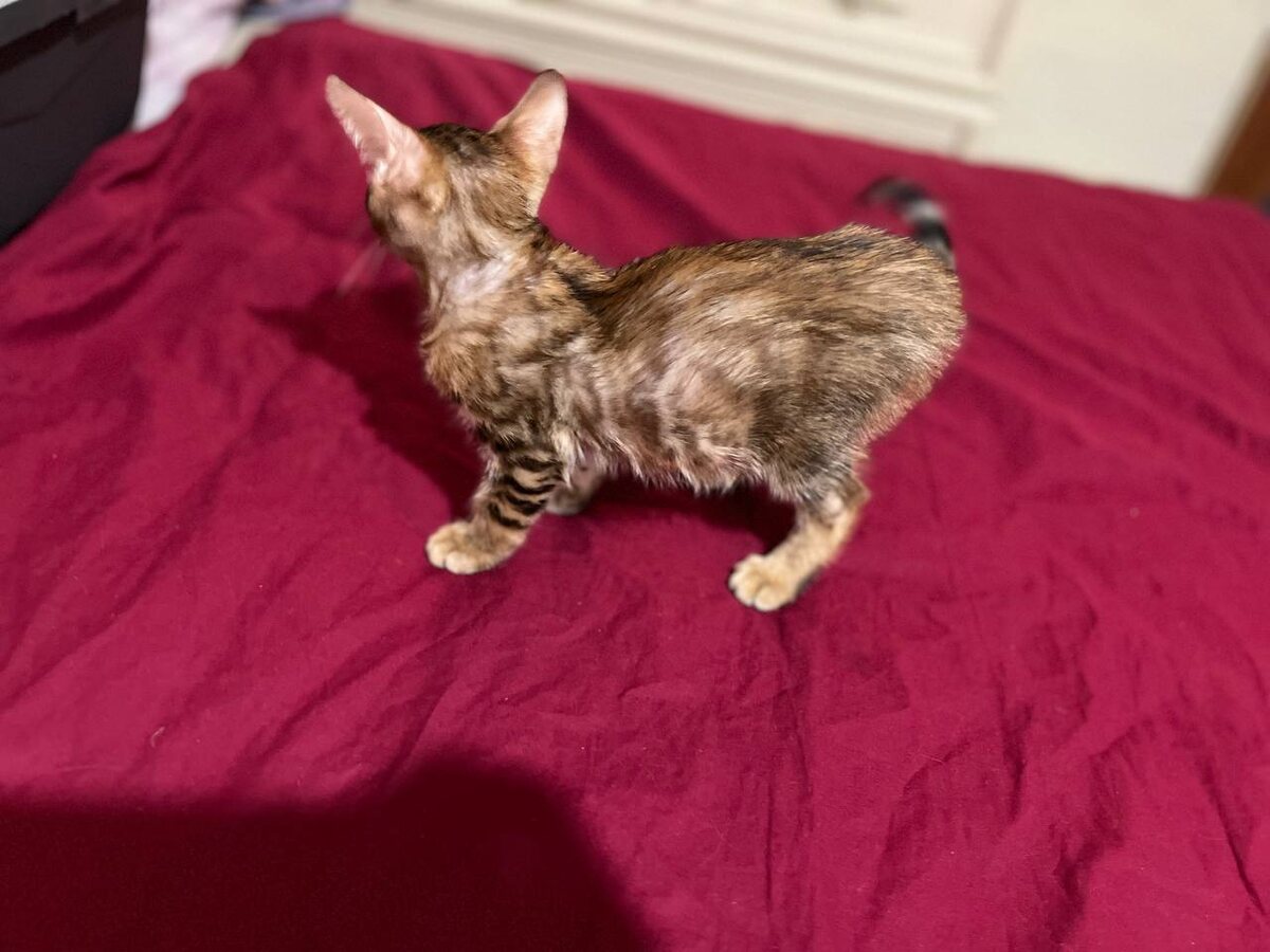 Подскажите может у кого так было ,котенок 2,5 мес бенгал ,пошло какое то искривление позвоночника ,прогиб ,на фото видно .Хирург сказал