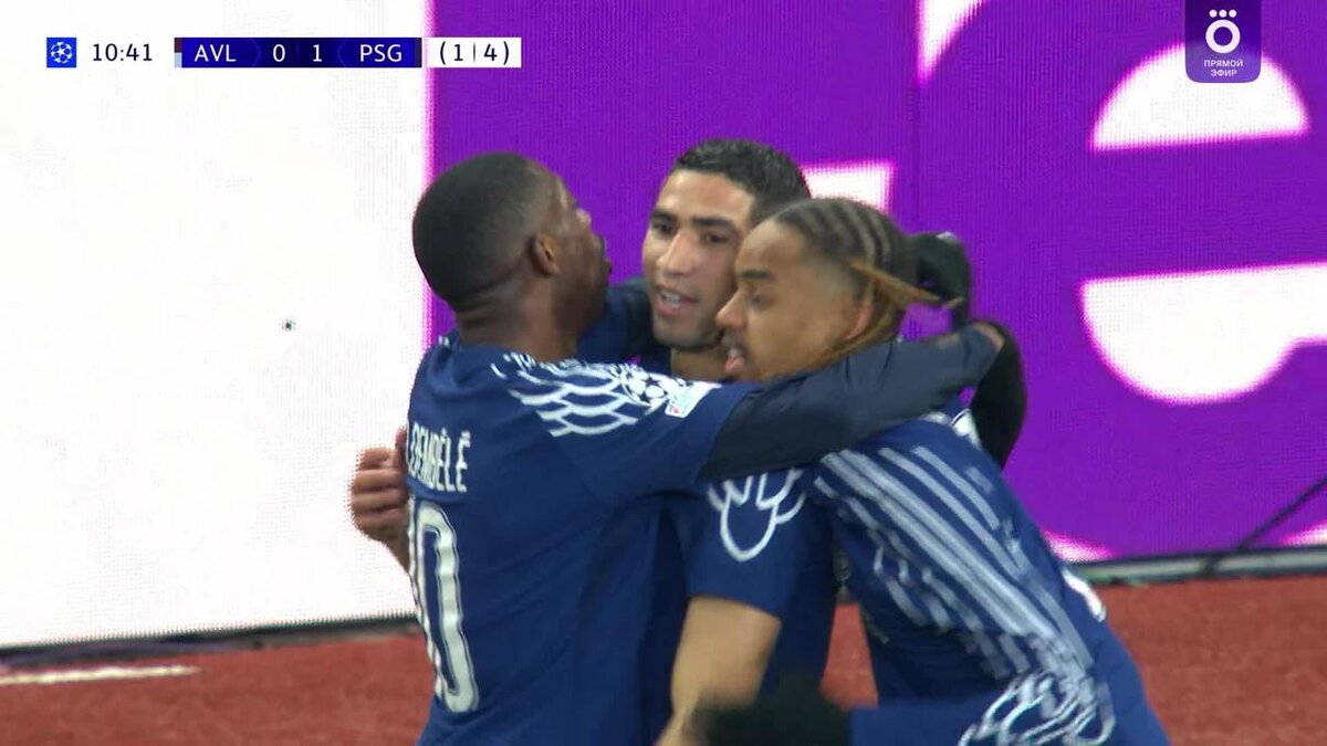Говорят, что гимн ЛЕ включили специально — Эмери так привычнее. Видимо, так и есть 😄 Неразбериха в обороне «Виллы» и гол Хакими в контратаке. 4:1 в пользу «ПСЖ» ⚽️
