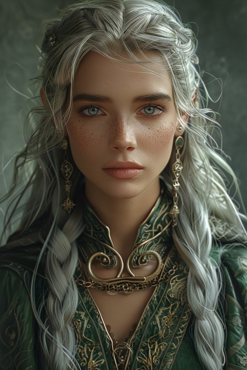 Создано на основе запроса: Portrait of Faelarge Moonwhisper, an elegant and poised female High Elf diplomat, long intricate silver hair, piercing blue eyes that hold intelligence, wearing sophisticated flowing Elven robes in shades of green and silver, calm and calculating expression, simple elegant background, detailed fantasy character portrait style --- Автоперевод: Портрет Фаэларж Мун -Whisper, элегантного и уравновешенного женского дипломата высокого эльфа, длинных замысловатых серебряных волос, пронзительных голубых глаз, которые держат интеллект, носят изысканные текущие эльфийские одежды в оттенках зеленого и серебра, спокойного и расчетливого выражения, простой элегантный фон, детальный стиль портрета фантастического персонажа персонажа. Как тебе картинка? 🤔 https://dzen.ru/id/65c0c65c86e4f837c27b24d7 #ИИ #AI #нейросеть #midjourney #art