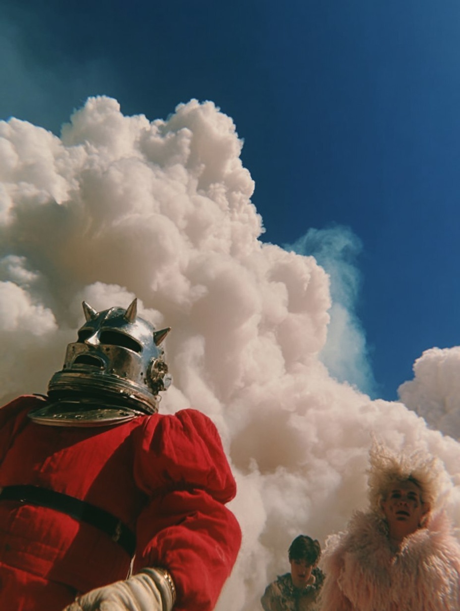 Создано на основе запроса: Editorial shot from Tim Burton's stunt action scifi photoshoot depicting a nightmare featuring yokais