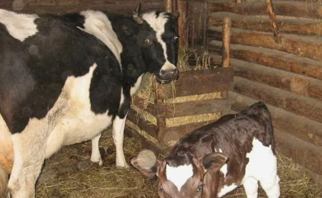 После отела теленка можно дать корове, чтобы она облизала его. Это не только удаляет слизь, но и массирует, благодаря чему у новорожденного усиливается кровообращение. Нельзя допускать, чтобы при облизывании теленка корова переворачивала его с боку на бок, так как она может поранить его рогами. Надо самому осторожно переворачивать теленка. Если корова не облизала теленка досуха, его обтирают тряпкой или жгутом из сухой соломы.