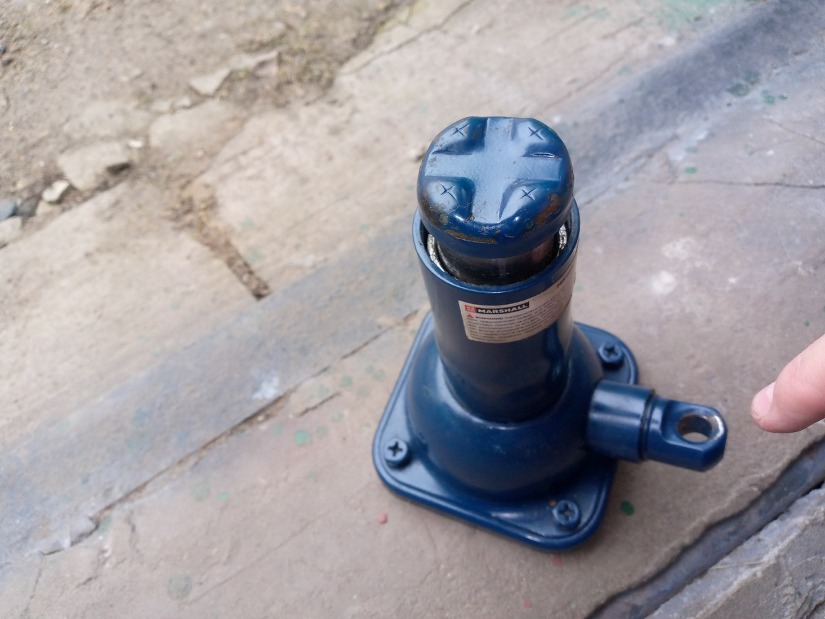 Итак уже писал про свой домкрат, который подобрал вместо штанного пластикового домкрата, который шел в комплекте с авто, и мне говорили, что он крайне не надежный, но я все же пользовался им года четыре. В итоге сменил несколько домкратов (в основном ромбических...), о чем писал уже в статье тут https://dzen.ru/a/Z_faW3cEzgZPRaZN?share_to=link В итоге подобрал для себя этот домкрат (фото ниже). Как им пользоваться, подробно описал в статье (ссылка выше). Если планируете приобрести такой же то читайте статью по ссылке обязательно! Пользуюсь уже 3,5 года , точно! Очень удобно, как оказалось, но даже если учесть тот факт, что он постоянно лежит в багажнике, на верхней части (подставка), и на вращающейся части ("крутилка") появились следы коррозии и я его решил подкрасить (см. фото ниже) Что ж долго думать не стал, зачистил участки коррозии куском наждаки, обезжирил ацетоном (что было.., как говорится...) ,обернул первой попавшейся в гараже ветошью и начал покраску черным грунтом в балло