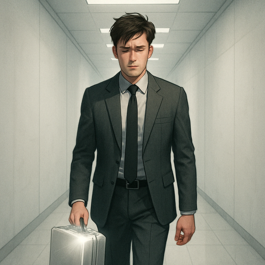 Парень c пушком над верхней губой, намекающим на будущие усы, шел длинными узкими коридорами и лестничными пролетами, неся прямо перед собой на вытянутых руках алюминиевый кейс. Яркий свет флуоресцентных ламп, попадая на матовую поверхность кейса, рассеивался в пространстве, но парень, изредка посматривая на свою ношу, все же щурился и морщил лоб. Его темно-серый строгий костюм контрастировал с бледной кожей и белоснежными стенами коридоров. Мягкая подошва обуви не издавала при ходьбе ни звука, новые лакированные ботинки лишь едва слышно поскрипывали, когда парень ускорял шаг.