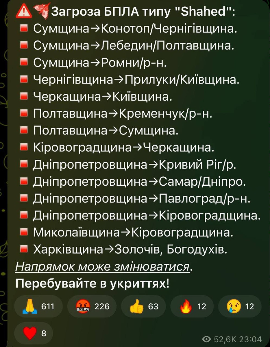 В ответ на пост Большое количество «Гераней» летит к своим целям на Украину. Сообщают о взрывах в Днепропетровской области, а также на Полтавщине. #Russia #Drones #ZOV #ukraine