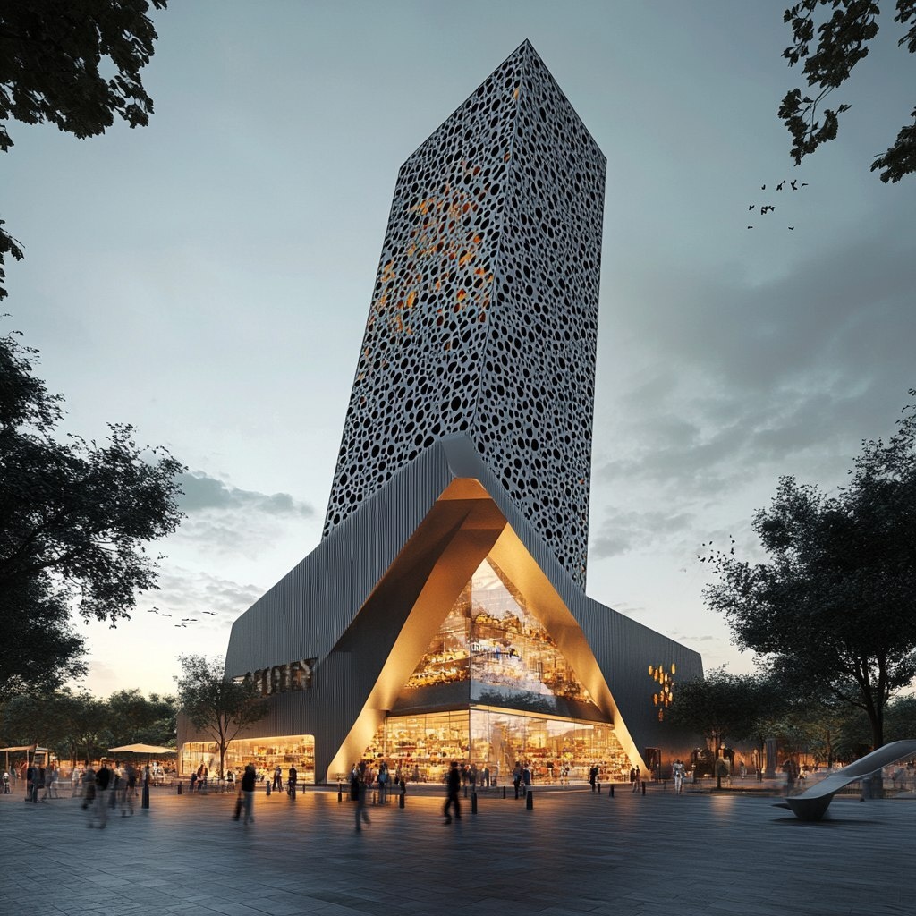 Создано на основе запроса: minimalistic modern design building , multifunctional complex , first floor is food market , second floor is restairant , third floor is museum , metal pattern as skin facade , tower is growing from center , metal structure , tower has metal skin , cinematic environment , people around --- Автоперевод: Минималистичный современный дизайнерский здание, многофункциональный комплекс, первый этаж - рынок пищи, второй этаж ресторан, третий этаж - музей, металлический рисунок, как кожа, башня растет из центра, металлическая структура, башня имеет металлическую кожу, кинематографическую среду, люди вокруг Круто вышло? 🤔 https://dzen.ru/id/65c0c65c86e4f837c27b24d7 #ИИ #AI #нейросеть #midjourney #art