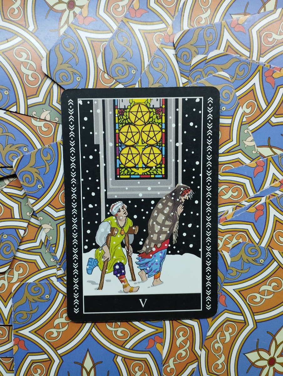 Предостережение на 16.04.2025. 5 пентаклей. Затронуты уроки духовности, мы стараемся схватить мелкие возможности под ногами, а двери храма нам освещают путь для более серьезных дел. Важно очень, поднять голову, обратиться к душе, что же она желает.
