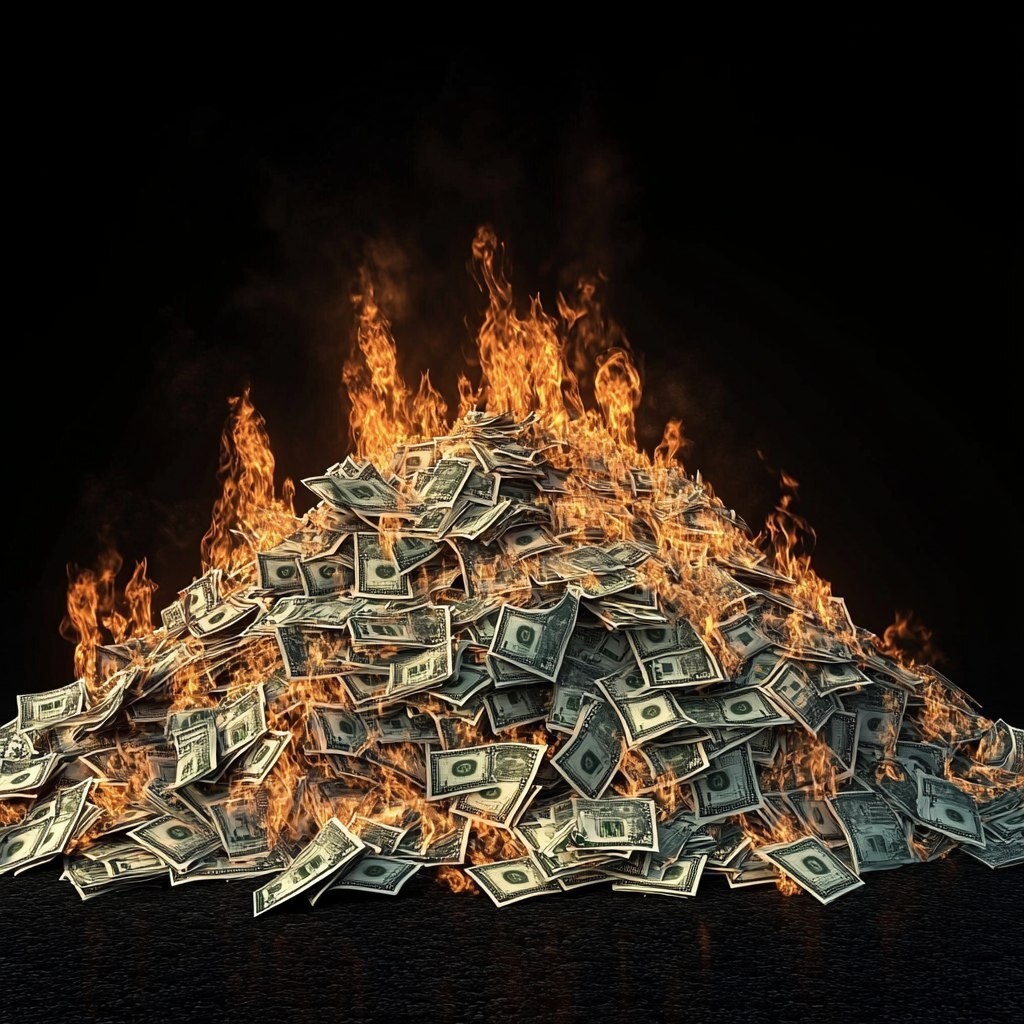 Создано на основе запроса: extremely detailed and realistic, total black background, giant pile of money burning, colossal pyramid of money, trillions of dollars, infinite mountains of money --- Автоперевод: Чрезвычайно подробный и реалистичный, общий черный фон, гигантская куча сжигания денег, колоссальная пирамида денег, триллионы долларов, бесконечные горы денег Как тебе генерация? 🤔 https://dzen.ru/id/65c0c65c86e4f837c27b24d7 #ИИ #AI #нейросеть #midjourney #art