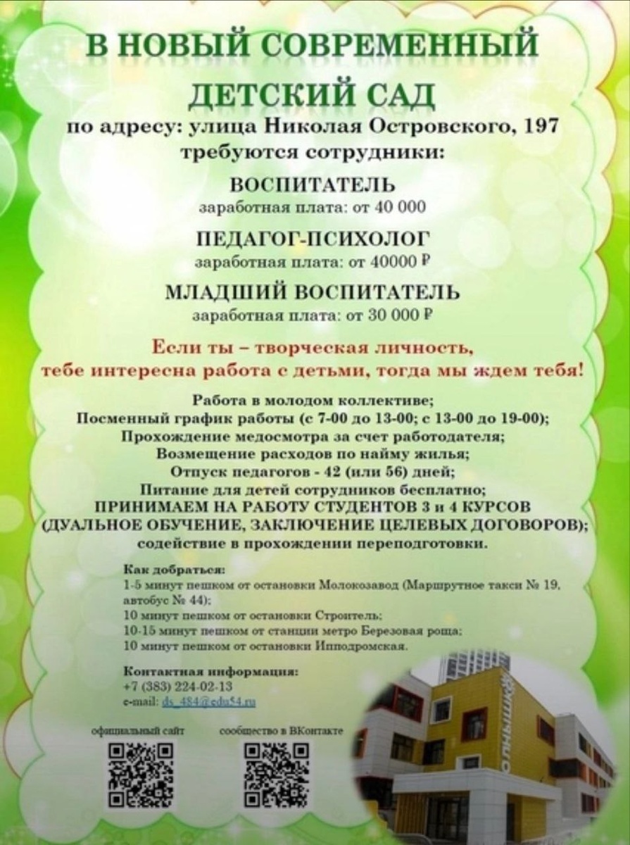 НОВЫЙ ДЕТСАД НА ОСТРОВСКОГО ПРИГЛАШАЕТ СОТРУДНИКОВ В СВОЙ КОЛЛЕКТИВ
