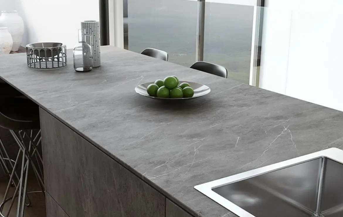 - Синтерированный камень — новинка! Ультратонкий, термостойкий, имитирует мрамор или бетон без потери прочности.