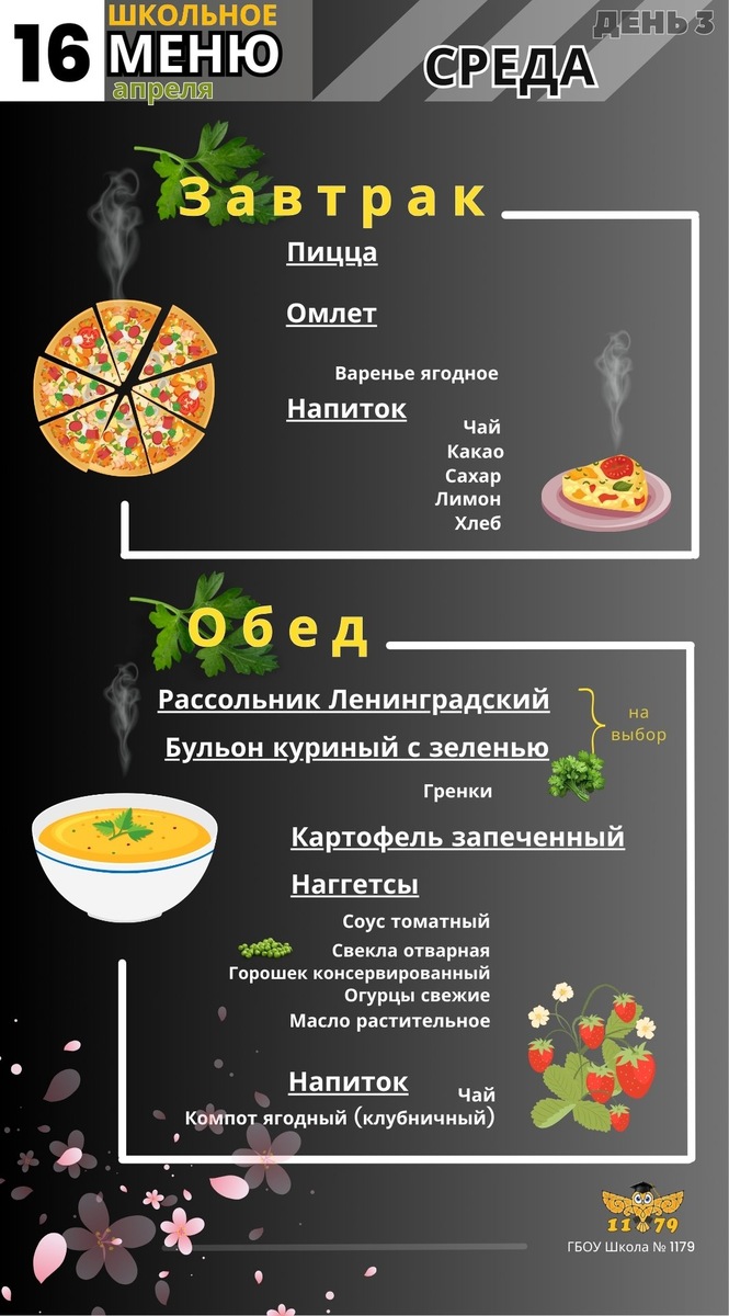🍽 Меню на 16 апреля. #НашеПитание #Питание1179 #Школа1179