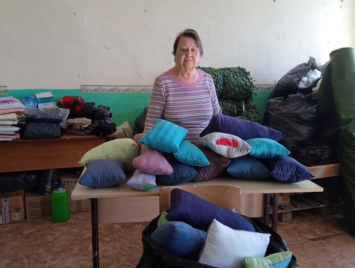 Серебряный волонтер из Есаульского шьет подушечки для раненых бойцов