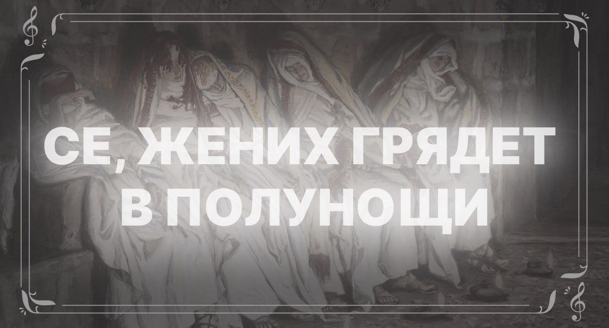 📕 ЭТО ПЕСНОПЕНИЕ — тропарь, который поется на утрени после шестопсалмия в первые три дня Страстной седмицы. А еще — в дни память преподобных жен (святых монахинь). Тропарь — один из самых важных текстов любого праздника, он раскрывает суть отмечаемого события. Се Жених грядет в полунощи, и блажен раб, егоже обрящет бдяща: недостоин же паки, егоже обрящет унывающа. Блюди убо, душе моя, не сном отяготися, да не смерти предана будеши, и Царствия вне затворишися, но воспряни зовущи: Свят, Свят, Свят еси Боже, Богородицею помилуй нас. Перевод: Вот, Жених приходит в полночь, и блажен тот раб, которого Он найдёт бодрствующим. Недостоин же тот, которого Он найдёт в унынии. Будь внимательна, душа моя, чтобы не отяготиться сном и не быть преданной смерти и остаться вне затворённых дверей Царства. Но восстань, взывая: Свят, свят, свят, Боже, Богородицей (Её молитвами) помилуй нас. «Се, Жених грядет…» отсылает нас к притче о десяти девах (Мф 25:1–13), которая читается в Великий Вторник. В не