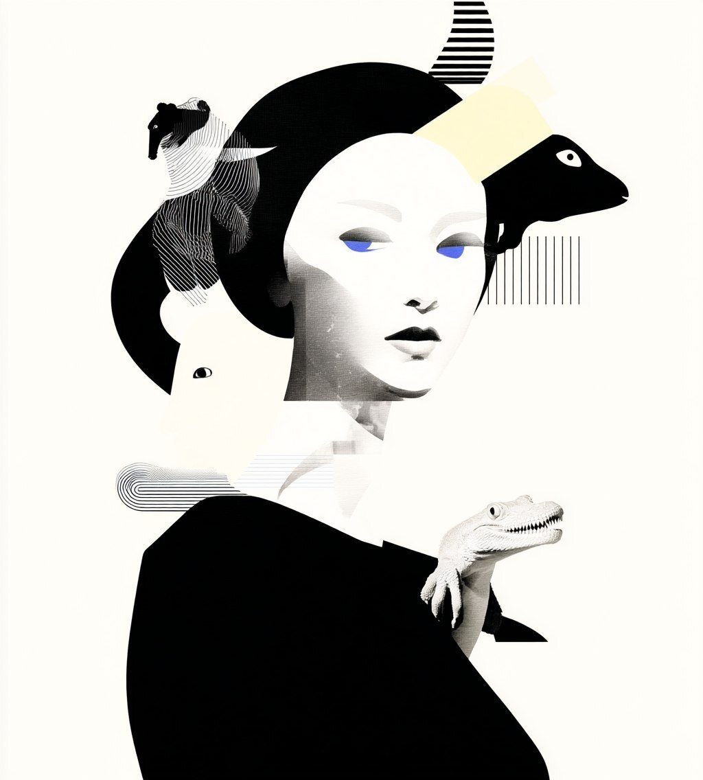 Создано на основе запроса: bold modern abstract beautiful calm renaissance zen coco chanel femme fatale yokai monster core