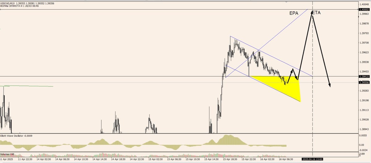 Сейчас на М10 цена находится в зоне SweetZone. С точки зрения концепции волн Вульфа, в приоритете поиск возможностей для покупок. Такой сценарий предполагает ещё одно звено роста к уровню 1.4000 с последующей реакцией на продажу в области вершины четвёртой волны на Н2.