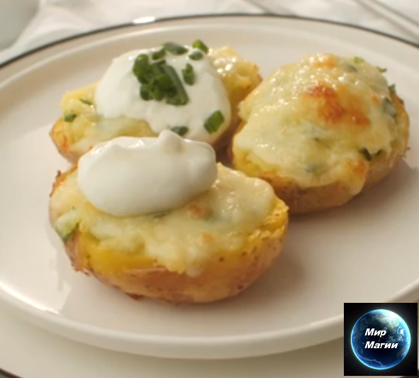 Разрежьте каждую картофелину пополам вдоль (будьте осторожны, они будут горячими), затем выньте большую часть картофеля в миску, оставив картофельную кожуру с тонким слоем картофеля. В миске разомните картофель с оставшимся маслом и двойными сливками. Приправьте солью и перцем. Добавьте лук, бекон, три четверти сыра и половину петрушки. Выложите обратно в картофельные оболочки и посыпьте оставшимся сыром. Переложите на противень и верните в духовку на 10-15 минут, пока сыр не расплавится и не станет золотистым. Посыпьте оставшейся петрушкой и подавайте с остро заправленным хрустящим салатом, если хотите.