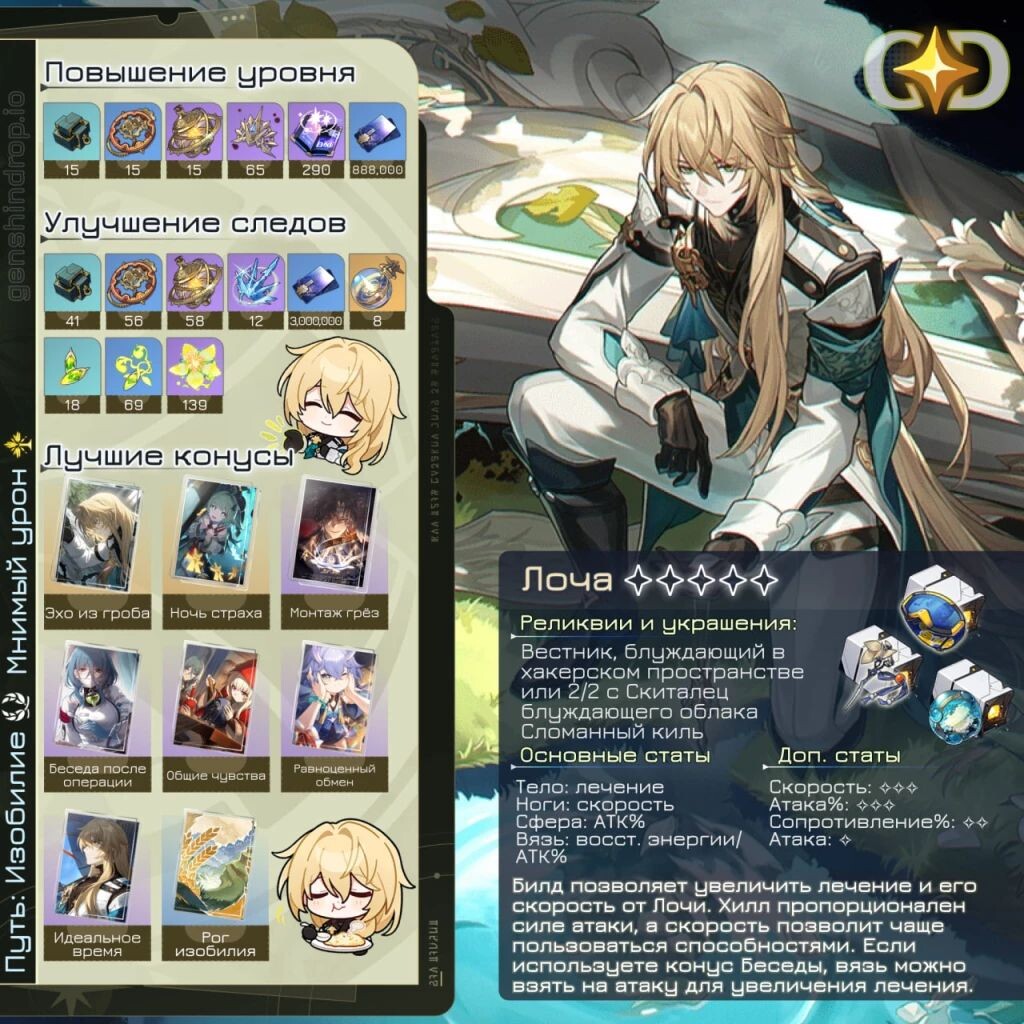 ㅤС выходом 3.2 в специализированном магазине можно получить Лочу за предмет Дух звёздного попутчика. Это персонаж Пути Изобилия с Мнимым типом урона, чьи механики полностью сосредоточены на лечении.