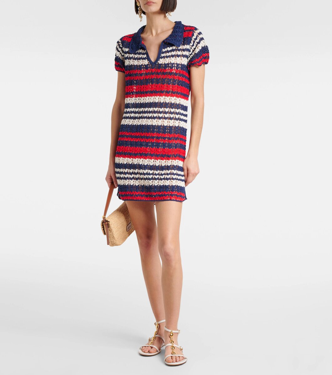 Добавьте непринужденную элегантность в свой солнечный летний образ с помощью этого комплекта от Oscar de la Renta. Основная часть связана спицами и украшена воланами, связанными крючком.