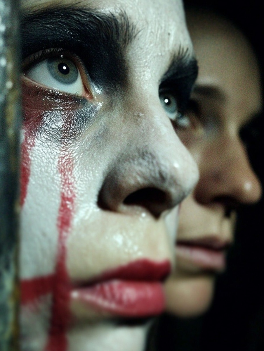 Создано на основе запроса: Editorial shot from Tim Burton's stunt action scifi photoshoot depicting a nightmare featuring yokais