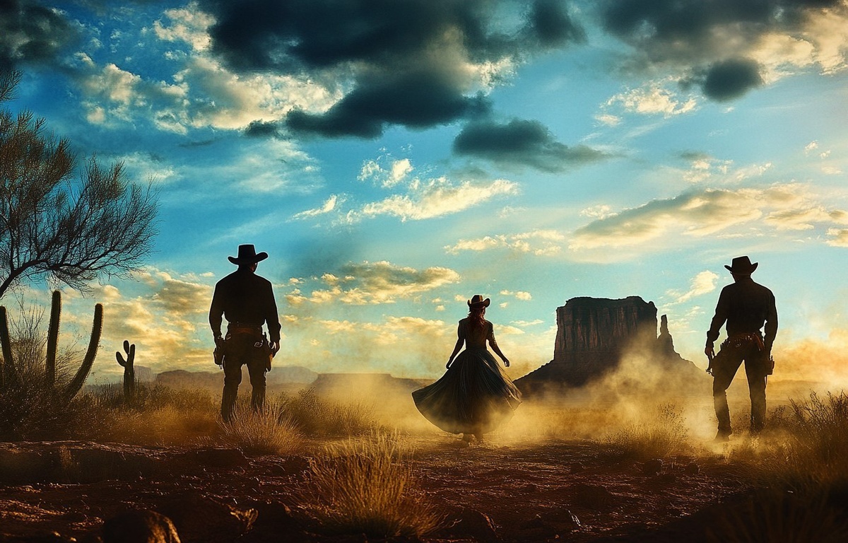 Создано на основе запроса: Silhouette of a stunning Old West love triangle