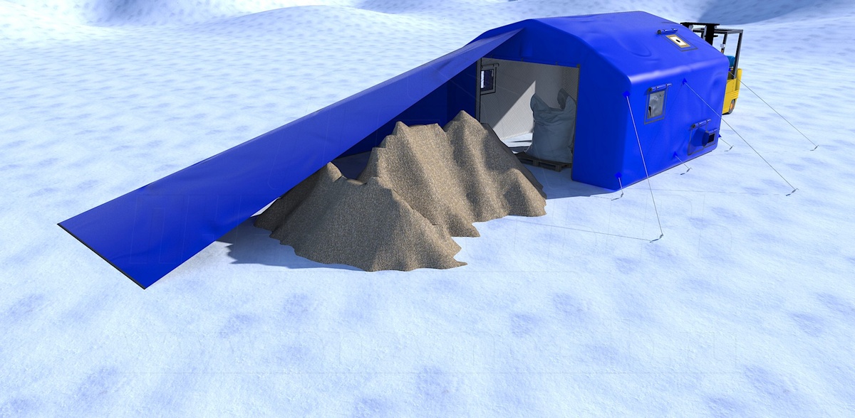 Надувной модуль предназначен для сельского хозяйства и используется производителями во время уборочной компании Температура эксплуатации: от +50 до -50 С. Размеры палатки: 4 х 4 х 2,7 м. В упакованном виде: 1,26 м./куб. Вес - 90 кг. Ссылка на видео: https://www.youtube.com/watch?v=vu1E3zP1xv4 Сайт: https://pnevmo-sib.ru/