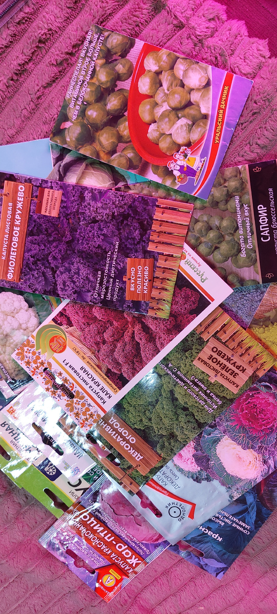 Всем здравствуйте! Сегодня 16 апреля. И я начинаю посев капусты на рассаду. Сеять буду в касеты по несколько семечек. Давайте посмотрим какие сорта я приготовила. Конечно же брюссельская. Вкусно и полезно. 2 сорта Брюссель ранний гибрид, сапфир же позднего срока созревания. Брокколи это Линда и Тонус...очень любим эту капустку..она идёт в заморозку. Будет ещё один сорт...это Лорд, но он пока в пути. Люблю краснокачанную капусту в салатах. И хранится она отлично. Посмотрим что из этого выйдет. Только Гако с нормальным сроком годности...остальные семена просрочены. Так же будет капуста Кале..очень красивые кучерявые кусты...но конечно это не только декор...да она не много жёсткая. Но в горячих блюдах очень даже не плоха...а голубцы с ней напоминают больше долму. Эта красота уже конечно для декора...хочется попробовать вырастить Тут конечно ради любопытства...не могу сказать что люблю пекинскую капусту, а пак- чой вообще никогда не пробовала. Белокочанная капуста. Выбор пал на эт