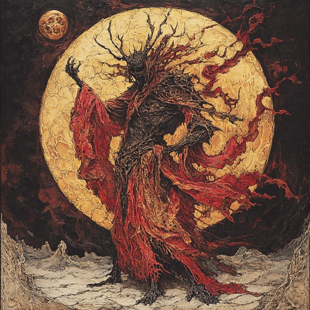 Создано на основе запроса: yokai priest of eclipse, ends of reality tethered to rotten husks of soul, cast deep in pits of lonely salvation