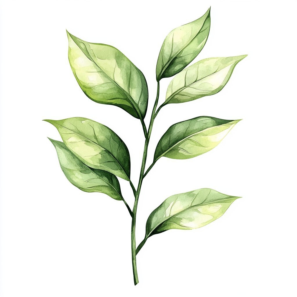Создано на основе запроса: Watercolor, green tea leaf branch clipart, vector style, white background