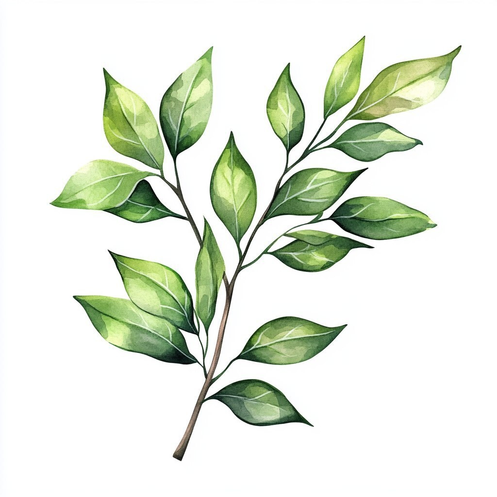 Создано на основе запроса: Watercolor painting of a branch with green leaves on a white background, high-resolution vector for print and