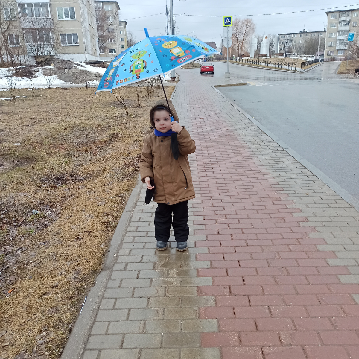 Илюша после 3-х недельного больничного идёт в детский сад. Довольный. 🎈👶👣
