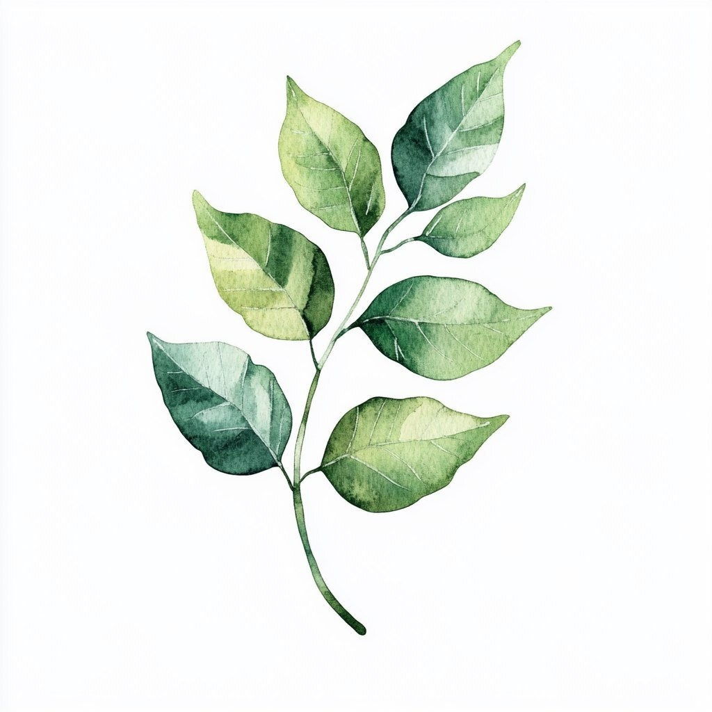 Создано на основе запроса: Watercolor, simple green leaves clipart, white background, neutral colors, minimalist style, flat design, vector