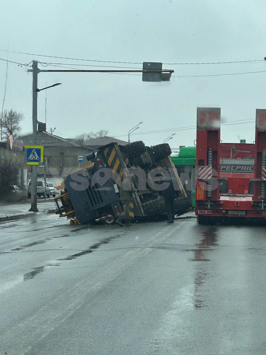 На перекрестке в Южно-Сахалинске уронили кран 😱