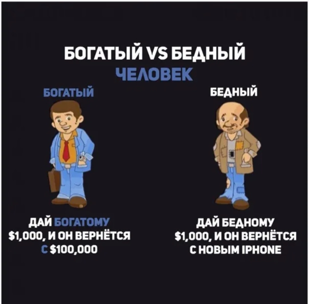Пять лет назад ученые из MIT (Массачусетский технологический институт) разделили людей с депрессией на разные группы: одних участников опыта отправили на курс психотерапии, другим — вместо психологической помощи дали $500. Так вот, у первых заметных изменений не случилось, несчастные все хандрили, зато вторые демонстрировали куда большее жизнелюбие. Деньги оказались эффективнее терапии. И это выяснили американцы, которые очень любят личных психотерапевтов и психологов (им, видимо, просто поговорить по душам не с кем). Так вот, можно считать научно подтвержденным, что минимум половина проблем связана не с проблемами психики, а с проблемами подхода к заработку. Заметьте, не с самим размером заработка, а с подходом к его получению и применению. Можно зарабатывать МРОТ, жить с огорода, ни на что не претендовать и быть счастливым. Лично я так не смогу, но я знаю людей, которые отлично себя чувствуют, ни о каких психологах даже не помышляют, и вовсе не по финансовым соображениями. Просто их