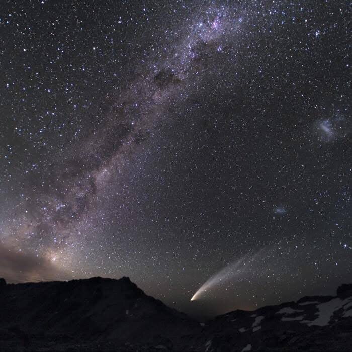 На горизонте видна комета Макнота, посетившая окрестности Солнца в 2007 году
