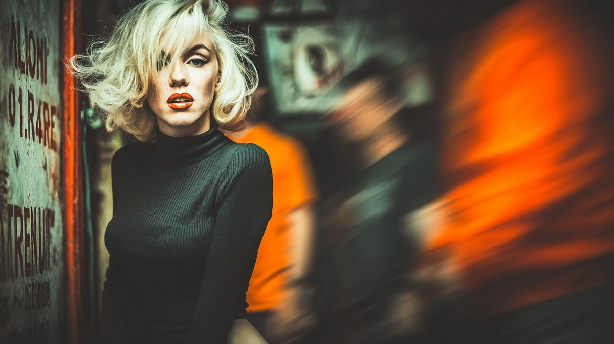 Создано на основе запроса: extremely abstract dark surrealism, Marilyn Monroe . She is set against a landscape inspired by 1960s California beach surfer culture, impressionism ,volumetric lighting , dynamic lighting and shadows, color gradient, medium format film photography, rule of thirds,