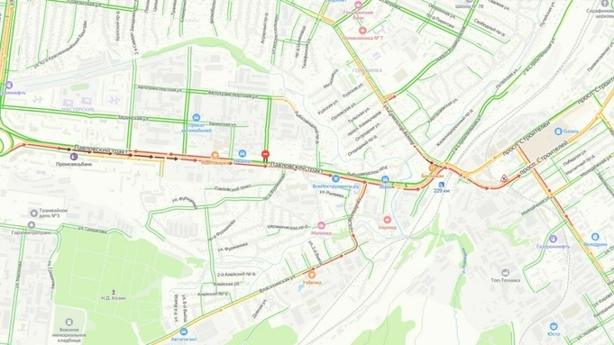Автомобили буквально стоят на месте на Павловском тракте и проспекте Строителей В Барнауле в среду утром, 16 апреля, пробка протяженностью более 2,5 км образовалась на Павловском тракте из-за ДТП. Ситуацию осложняет еще и то, что чуть дальше, на проспекте Строителей, ведутся дорожные работы, в итоге и там возник затор длиной почти в километр. Как видно на карте, сложности с движением наблюдаются на улицах Власихинской, а также Фурманова и Советской Армии, где водители просто не могут выехать на Павловский тракт. ДТП произошло напротив торгового центра "Формула М2", столкнулись два автомобиля. В итоге перекрыты средняя и правая полосы. По данным сервиса "Яндекс", ситуация с пробками в городе оценивается на 6 баллов. Больше материалов на amic.ru.