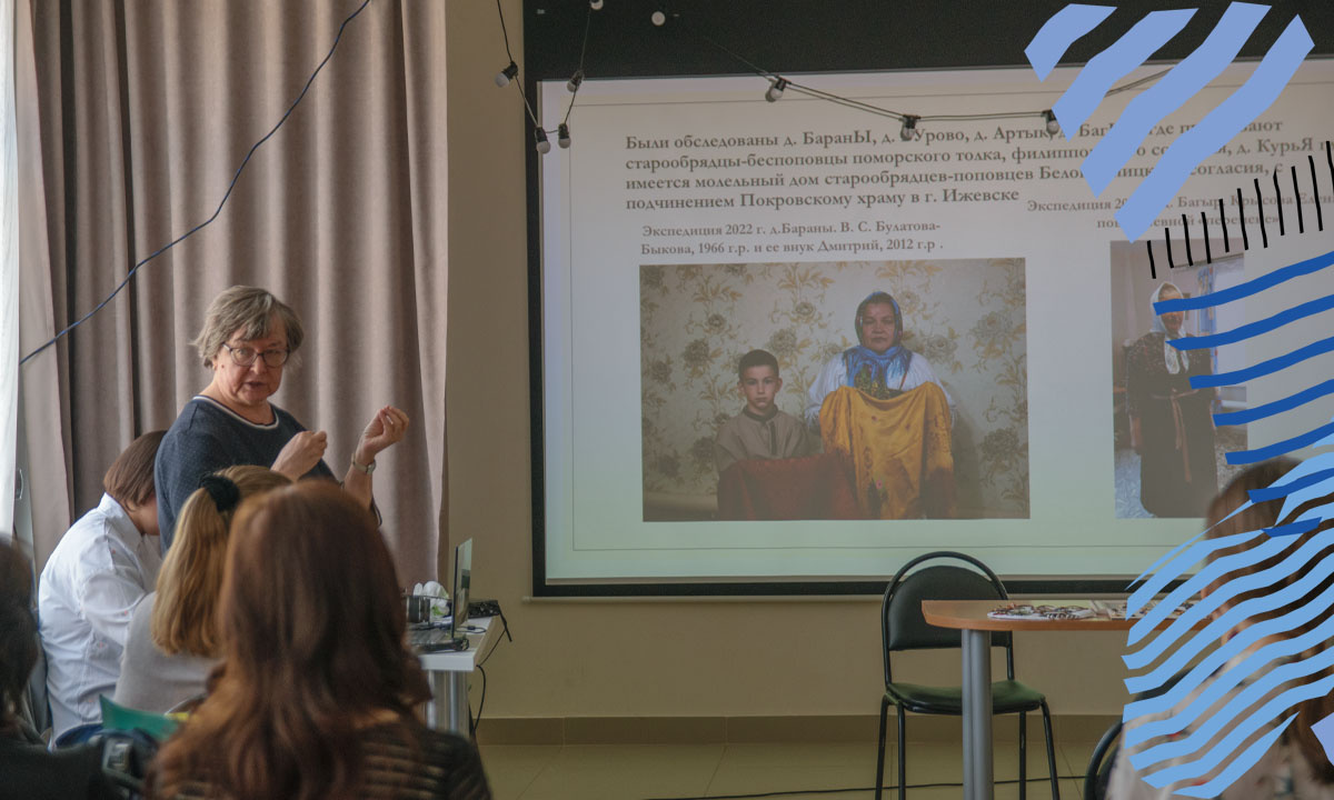 В целом же почти все участники фольклорной секции, особенно начинающие исследователи, так или иначе связаны и с нашими проектами, посвященными нематериальному культурному наследию, и с нашими лабораториями. И большинство имен в «повестке дня» конференции – неслучайные для нас и Публичного архива традиционной культуры Удмуртии люди, все они хорошо знакомы нам, уважаемы и любимы. Руководитель фольклорного ансамбля «Сорока», лауреат нашей премии «Хранители» Марина Роготнева, этнохореограф Юлия Богданова, магистрант Российской академии музыки имени Гнесиных Кристина Романова, студенты УдГУ, участники ансамбля «Важнин ключ» Елизавета Смирнова и Александра Конышева, студенты музыкального колледжа, они же певуньи ансамбля «Сорока» Алиса Трудолюбова, Полина Николаева, Софья Дубовцева… Не раз обращались мы за экспертным мнением и к кандидату филологических наук Ирине Пчеловодовой, и к доктору искусствоведения Ирине Нуриевой… Вот она, еще одна важная миссия Публичного архива традиционной культуры – помогать находить единомышленников, объединять фольклорное сообщество.