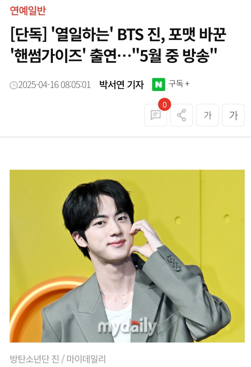 🎋 "Усердно работающий" Джин из BTS вновь появится в обновлённом шоу "Handsome Guys": выпуск выйдет в эфир в мае