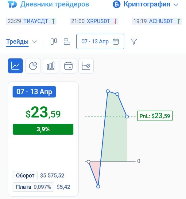 Прошлую неделю хоть я и торговал всего три дня из-за Сонгкрана, удалось перекрыть минус прошлой недели и выйти в плюс на 6% с небольшим, от первоначального депозита 😎 Работу над ошибками провёл 🧐 Но всё равно меня ещё подтряхивает и я начинаю отклоняться от стратегии 🙈 Но уже быстро это понимаю и беру себя в руки 👌 Психология играет очень важную роль в трейдинге 🔥