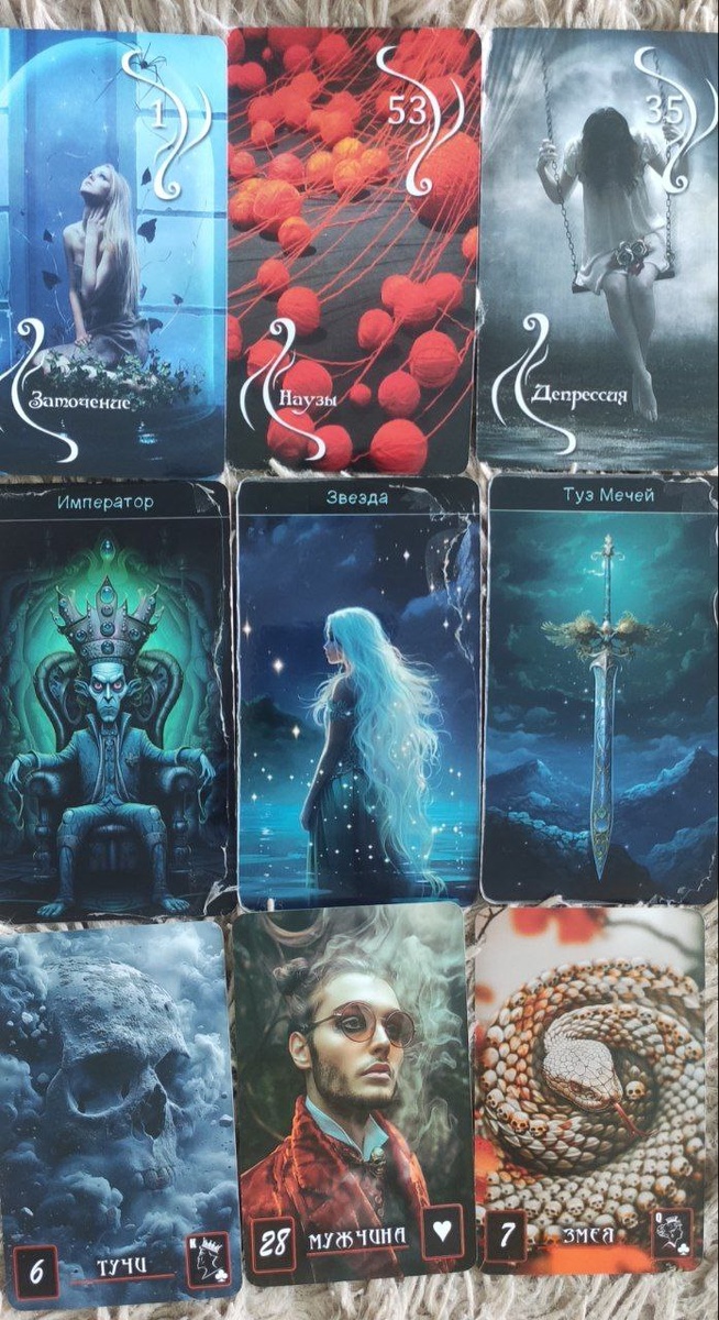 # к теме надо всё же придумать, чтобы легче было искать в ленте. Ну что? Начнём! Я, в своей практики, сталкиваюсь с разными историями, бывает всякое. Я не отказываюсь от раскладов на любую тематику, сама расту, как профи и другим помогаю 💪🏼❤️ Поэтому, кто хочет расширить свои "мультики" в Таро и смотреть больше, чем на мысли Пети... жду вашего актива, не стесняемся! И так! Выпуск Битвы экстрасенсов, где родные Артура [ветеринара], просили участников разобраться в причине смерти МЧ. Он был найден мертвым возле кладбища, с капельницей в вене, через которую подавалось лекарство для усыпления животных + в крови алкоголь. Экстрасенсам не удалось прийти к единому мнению - убийство или самоубийство? ДОСТАЁМ карты Вопрос: В чем причина смерти Артура? Я показала эту историю на 3-х разных колодах [разные системы] 1. ЗАТОЧЕНИЕ + НАУЗЫ + ДЕПРЕССИЯ 2. ИМПЕРАТОР + ЗВЕЗДА + ТУЗ МЕЧЕЙ 3. ТУЧИ + МУЖЧИНА + ЗМЕЯ Искренние соболезнования родным. Жду ваших вариантов до завтра... Пы.Сы.: просыпае
